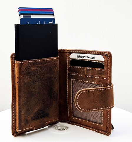 Büffelleder/Alu Kartenetui mit RFID