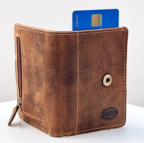 für 7 Karten zusätzliches Reisverschlussfach hinten.